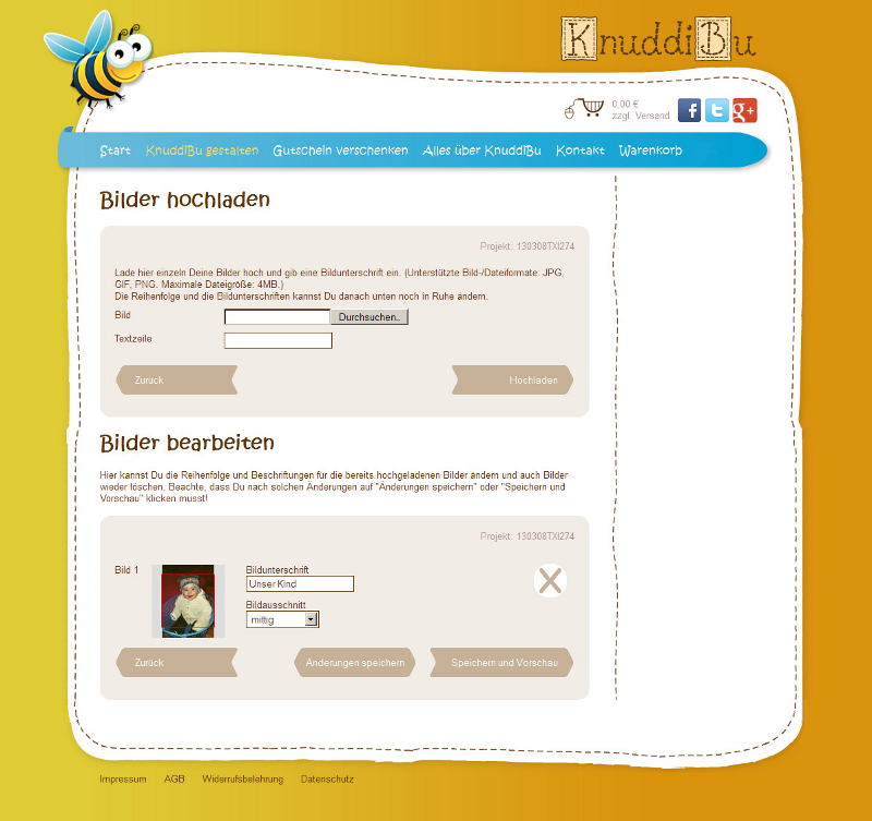 - Produkt-Konfigurator ("KnuddiBu gestalten")